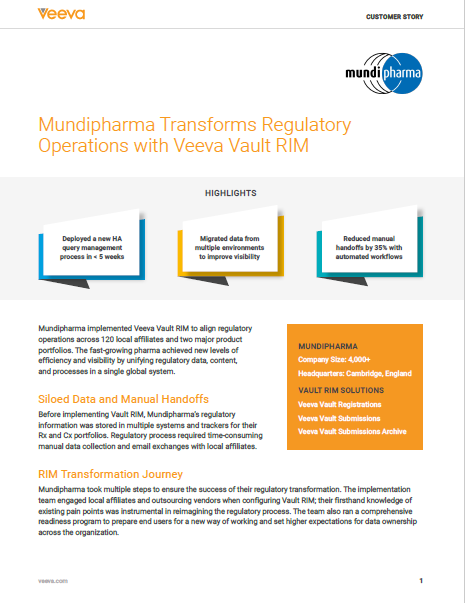RIM Veeva Vault Registrations 客户案例